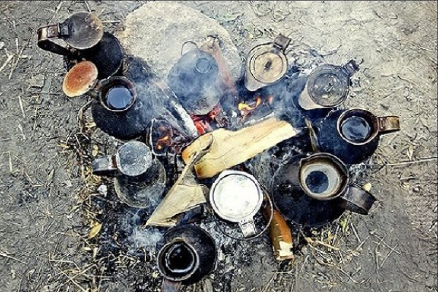 تعدادی از شرکت کنندگان با استفاده از آتش و کنده، اقدام به تهیه چای در ظروفی موسوم به کندک کردند.