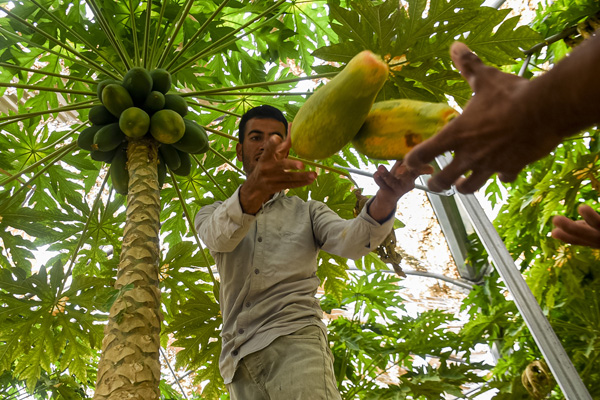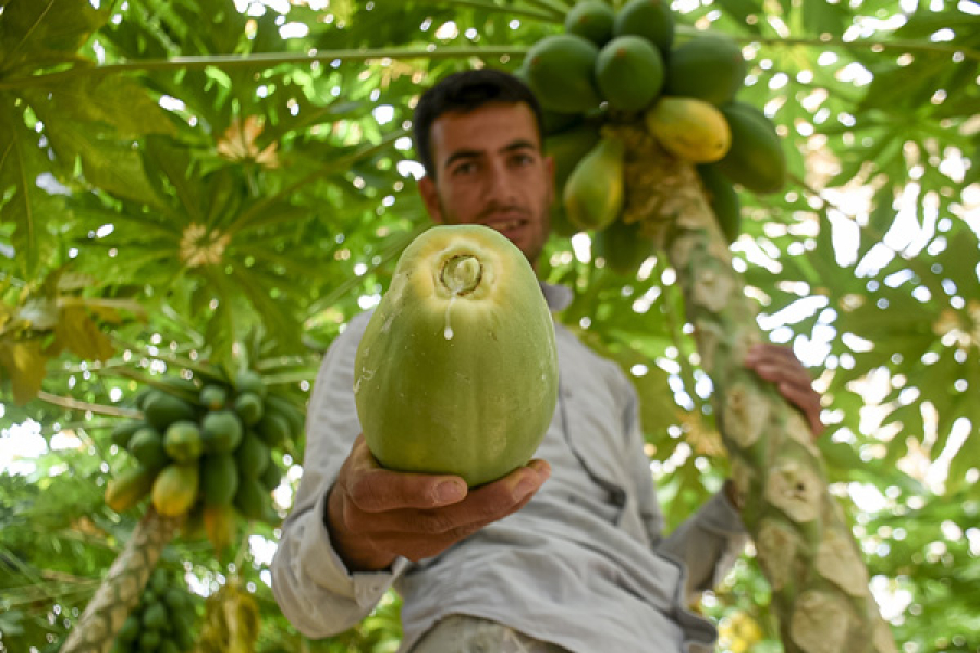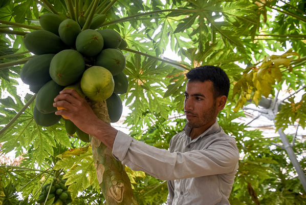 پاپایا یکی از محصولات گرمسیری محسوب میشود که امروز در گلخانه امام رضا علیه السلام شهرستان سردسیر مانهوسملقان پرورش داده میشود. این گلخانه در مساحت 7 هکتار در حال فعالیت است.(عکس: حسین معمری)