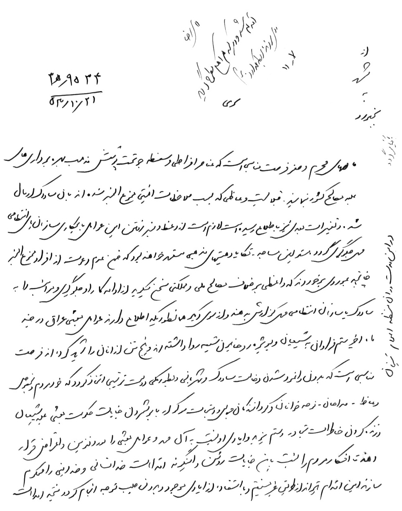 به گزارش نسیم امروز، متن این نامه و تصویر سند آن به شرح زیر است: