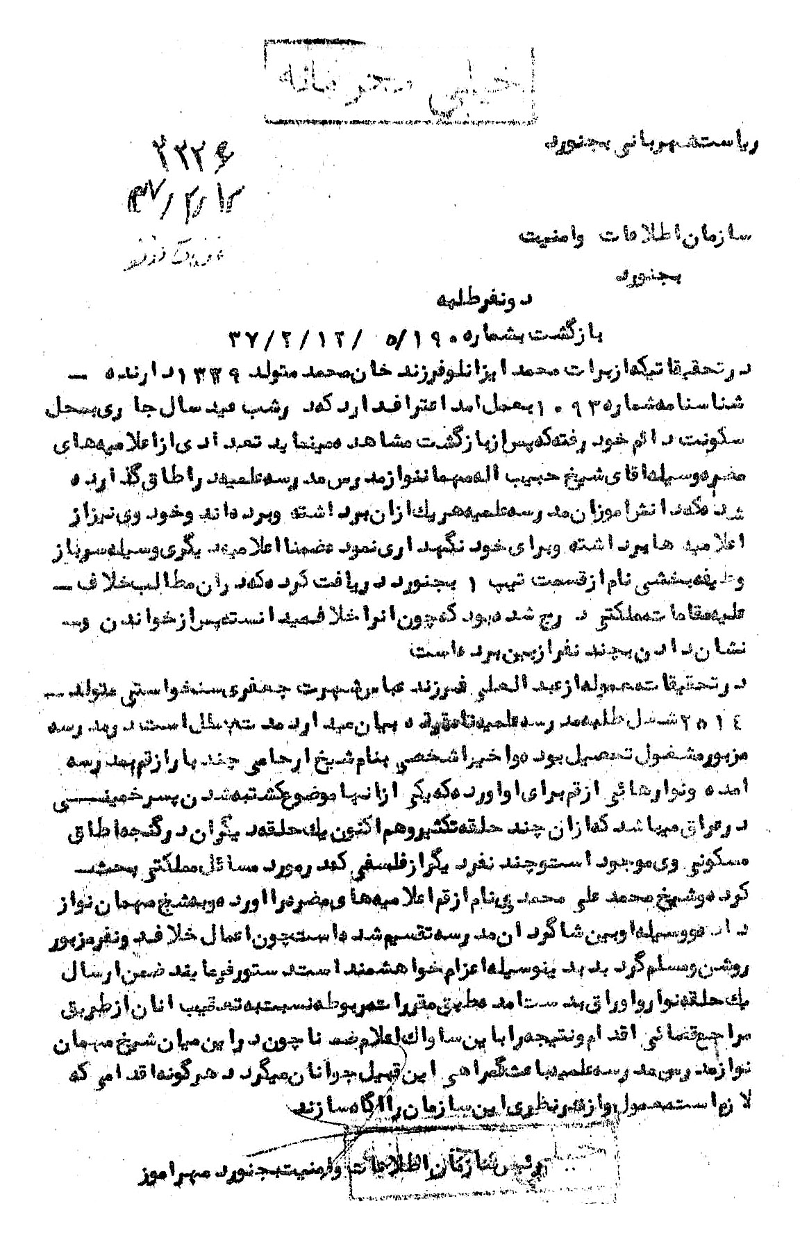از: سازمان اطلاعات و امنیت بجنورد