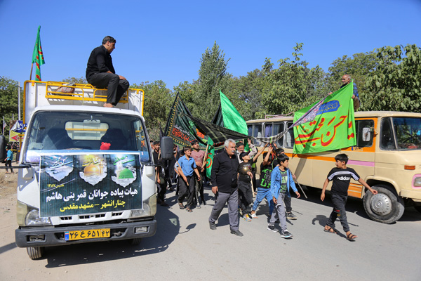 زائران پیاده چناران شهر در استان خراسان شمالی، صبح یکشنبه (۴ شهریور ۱۴۰۳) همزمان با اربعین حسینی (ع) به سمت حرم مطهر امام رضا(ع) حرکت کردند. این کاروان با طی مسافت ۲۴۰ کیلومتری، روز شهادت این امام بزرگوار در جوار بارگاه ایشان در مشهد مقدس به عزاداری و سوگواری خواهند پرداخت.(عکس: وحید خادمی)